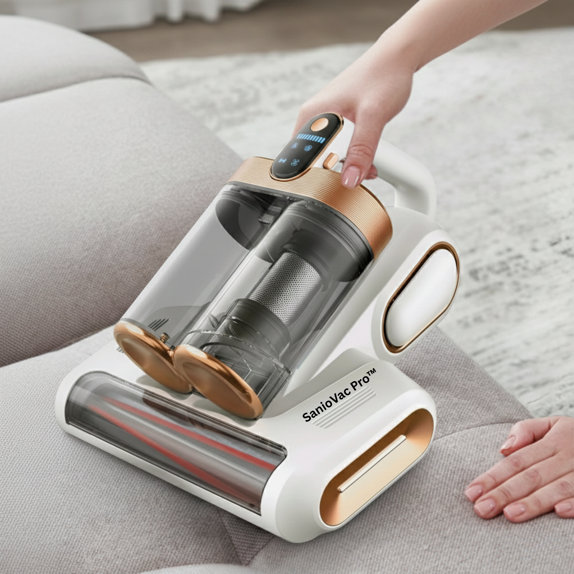 Experience the ultimate hygienic home with the SanioVac Pro™. Our lightweight and cordless technology lets you quickly sanitize every soft surface in minutes. It goes beyond cleaning dust - it targets stubborn dander, dust mites, and allergens to transform your entire living space. Stop wasting time on cleaning chores and start enjoying the peace of mind of a truly healthier home starting today!